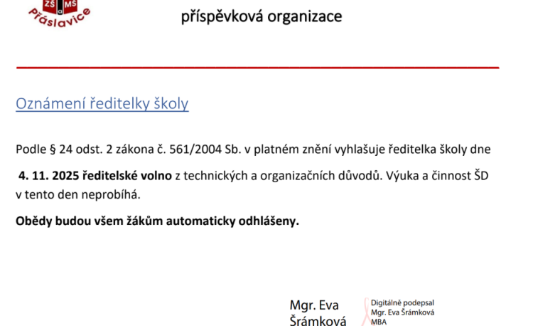 • Ředitelské volno